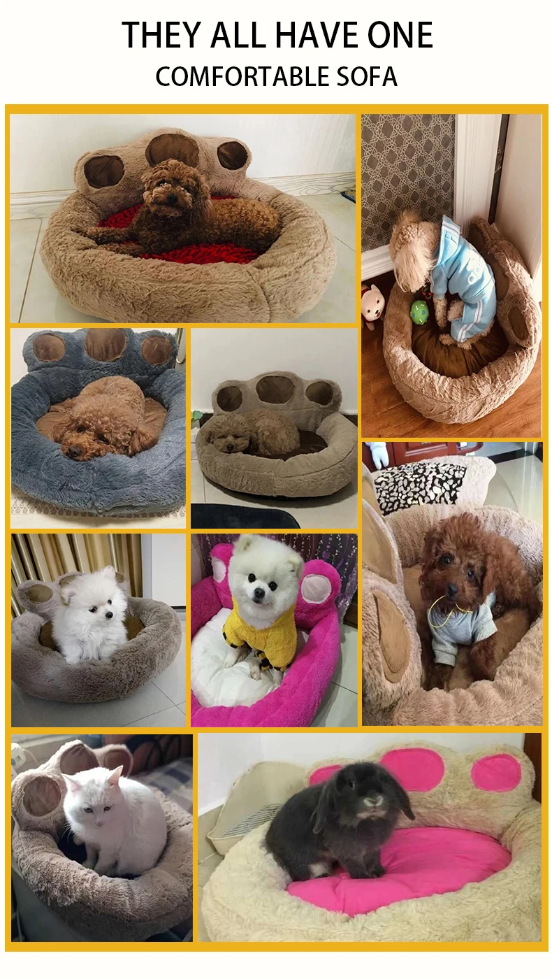Pet Dog Cat Warm Bed Winter Lovely Bear's Paw Dog Bed Soft Material Pet Nest Kennel For Cat Puppy Sofa Beds For Dogs Accessories