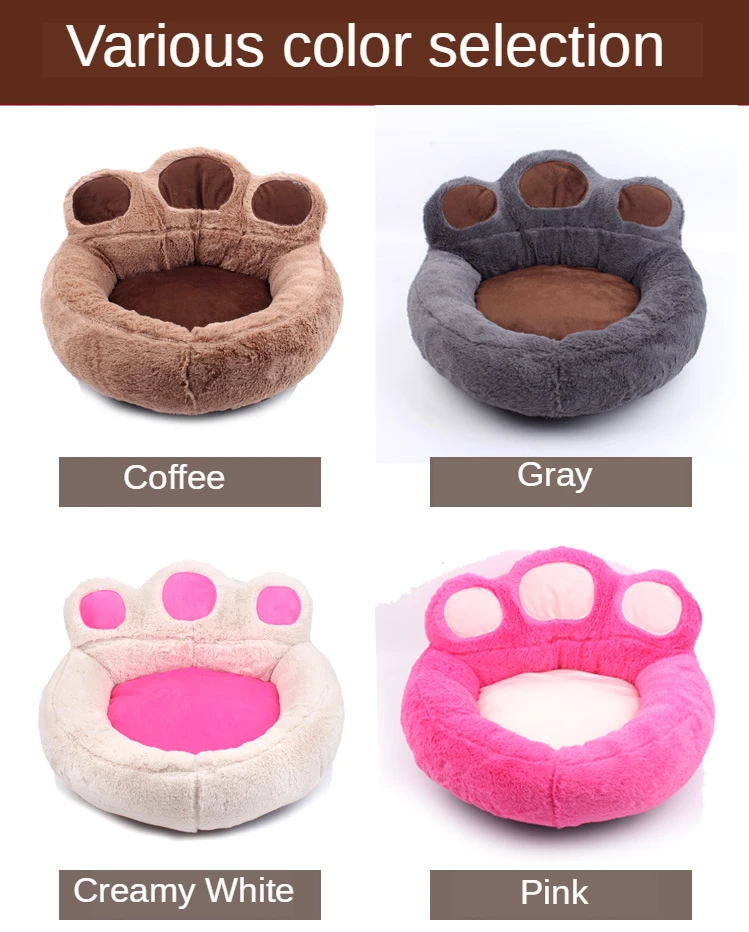 Features【Name】: Pet bear paw bed【Size】: S/M/L/XL【Material】: lint【Color】:pink/gray/creamy white/Coffee【Package】: 1piece Note:1.Please make sure to measure your dog or cat for accurate sizing before purchasing to ensure the perfect fit. 2.Due to the light and screen setting difference, the item's color may be slightly different from the pictures.3.Please allow slight dimension difference due to different manual measurement.please accept 1-3 cm error.